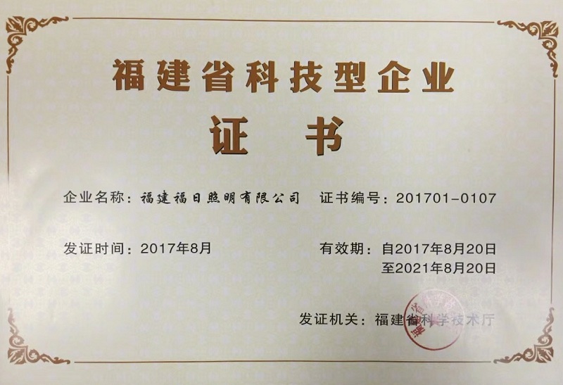 近日,福建省科學技術廳公布2017年第一批福建省科技型企業(yè)備案名單,福日電子控股企業(yè)福建福日照明有限公司被推薦認定為福建省科技型企業(yè)。