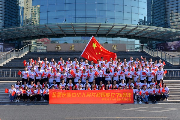 2019年9月以來,由福日電子黨委主辦、各所屬企業協辦的慶祝新中國成立70周年系列活動陸續展開,9月26日下午活動進入高潮。福日電子本部及所屬在榕企業在福州五一廣場隆重舉辦了“我和國旗同框”百人合影和“祖國我想對您說”活動。公司黨委書記李震等公司領導和各企業干部職工共130余人參加了活動。