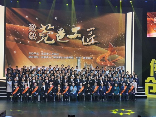 2019年12月12日,東莞市舉辦了“弘揚工匠精神,致敬莞邑工匠”主題活動,對東莞市今年評出的10名“莞邑工匠”、103名“首席技師”、30家技師工作站進行集中宣傳展示。其中,福日電子控股企業(yè)深圳市中諾通訊有限公司中諾學院講師戴石紅、陳山獲東莞市“首席技師”榮譽稱號。12月11日-12日晚,東莞大道兩旁的地標建筑均打出“弘揚工匠精神”“致敬莞邑工匠”“打造技能人才之都”等燈光秀標語,集體為工匠精神亮燈。