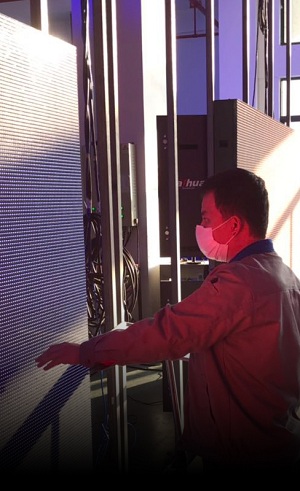 邁銳光電員工調試LED顯示屏