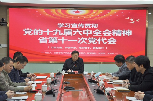 2021年12月31日,福建省電子信息集團黨委副書記、副董事長、總經理卞志航到福日電子作黨的十九屆六中全會精神、省第十一次黨代會精神專題宣講。集團相關部室負責人、福日電子領導班子成員及各部門負責人等參加宣講會。
