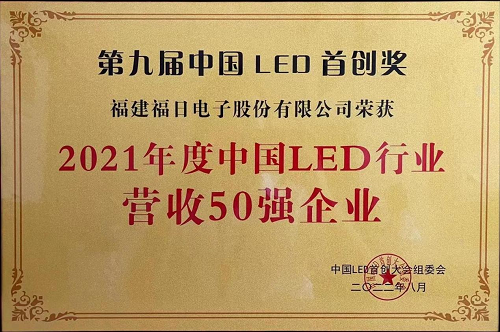 據組委會介紹,2021年度中國LED行業營收50強企業,是通過對上市企業年報及企業自主申報數據進行統計,由專家評審會嚴格評審后發布,本次50強企業入圍門檻為5.1億元。2021年,福日電子總營收186.34億元,其中LED部分8.36億元,成功超過入圍門檻。