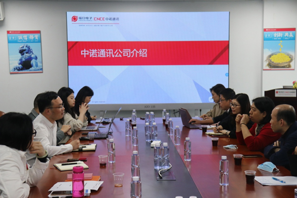 會上,調研組一行認真聽取了福日電子副總裁兼中諾通訊總裁陳仁強就中諾通訊歷史沿革、組織架構、業務方向、經營情況等情況的匯報,并圍繞供應鏈管理、財務核算、運營提升、信息化建設等展開交流。